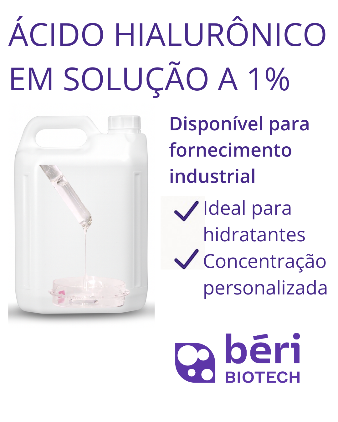 O Ácido Hialurônico em Solução 1% é desenvolvido pela Béri Biotech com tecnologia de levedura segura e livre de patógenos, garantindo qualidade e biossegurança superiores